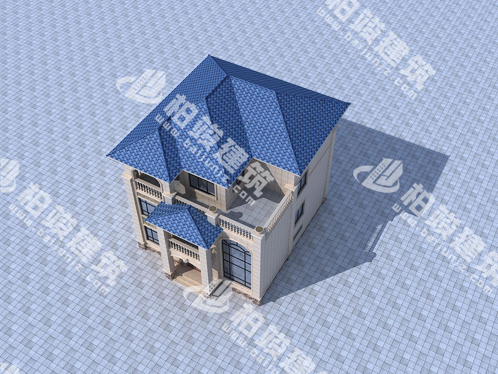 屋頂造型:藍色釉面瓷瓦鋪設坡形屋頂,流光溢彩