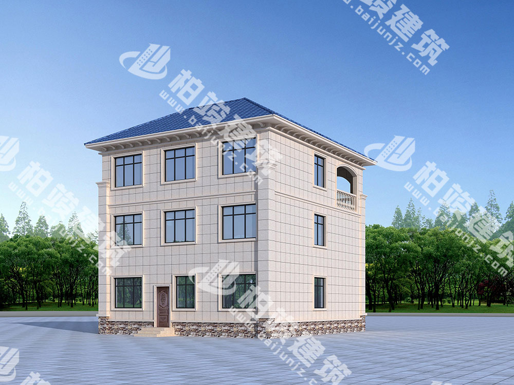 外墻涂裝:選用米白色真石漆全墻涂裝,搭配小范圍棕色文化石,營造別樣田園風情