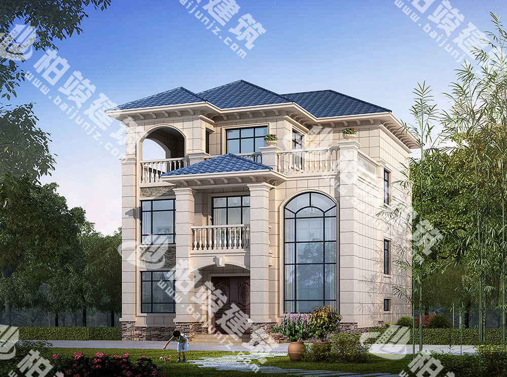 裝飾設計:米白色墻面浮雕、花盆、窗套、砌筑欄桿,經(jīng)典歐式構件篆刻雋永歐風