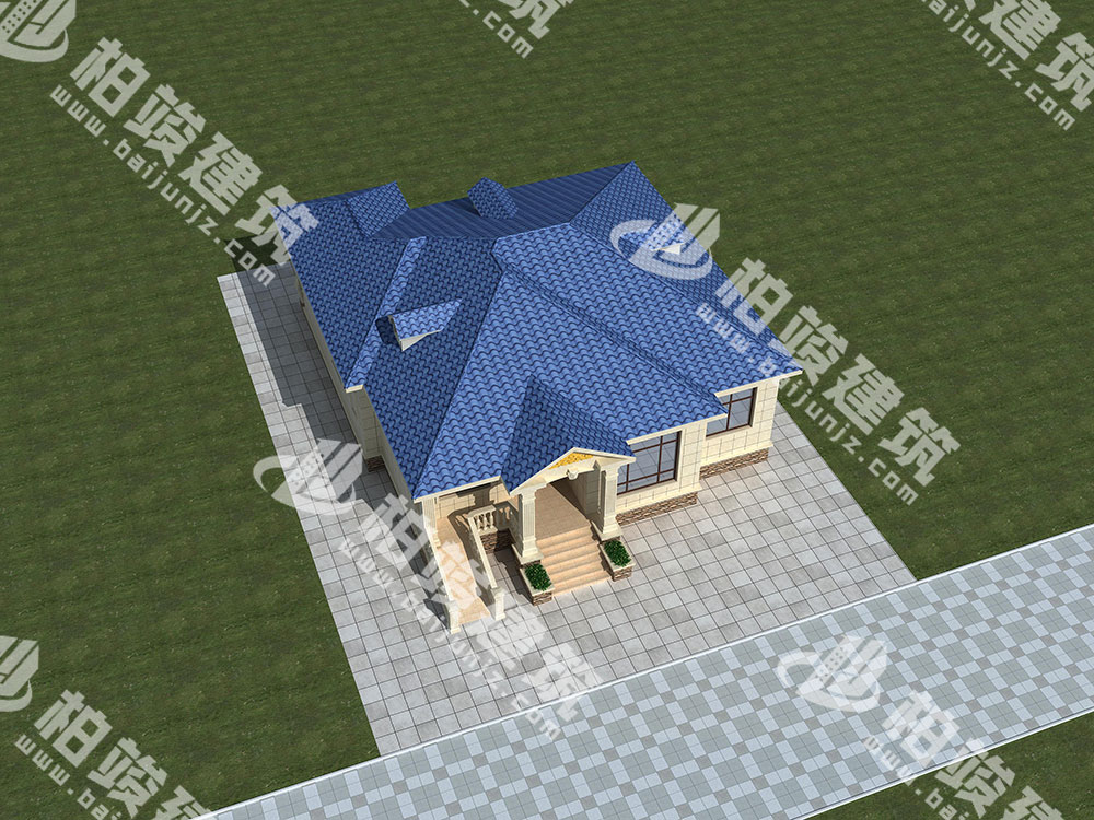 屋頂造型:寶藍(lán)色釉面瓷瓦鋪設(shè)坡形屋頂,色澤明麗奪目
