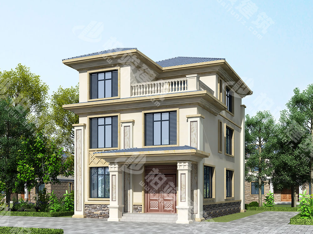 外墻涂裝:米黃色真石漆全墻涂裝,點(diǎn)綴灰棕色系文化石,營(yíng)造溫馨親和的住宅氛圍